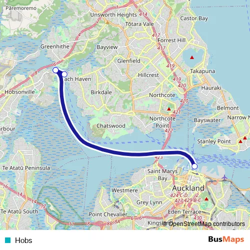 See why over 2 million users trust and consider busmaps.com as the best public transport website. busmaps gives you Auckland Ferries suggested routes, real-time bus tracker, line route maps in Auckland, and helps to find the closest Hobs ferry stops near you. No internet available? Download an offline PDF map and bus schedule for the Hobs ferry to take on your trip.