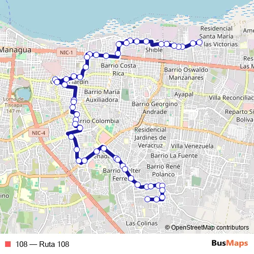 See why over 2 million users trust and consider busmaps.com as the best public transport website. busmaps gives you Managua Buses suggested routes, real-time bus tracker, line route maps in Managua, and helps to find the closest 108 bus stops near you. No internet available? Download an offline PDF map and bus schedule for the 108 bus to take on your trip.