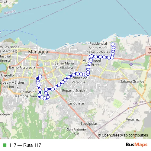 See why over 2 million users trust and consider busmaps.com as the best public transport website. busmaps gives you Managua Buses suggested routes, real-time bus tracker, line route maps in Managua, and helps to find the closest 117 bus stops near you. No internet available? Download an offline PDF map and bus schedule for the 117 bus to take on your trip.