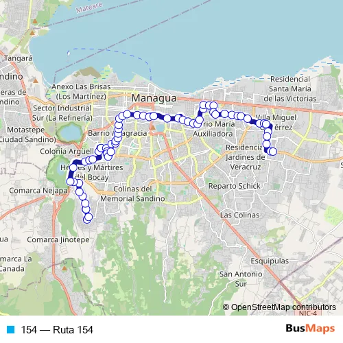 See why over 2 million users trust and consider busmaps.com as the best public transport website. busmaps gives you Managua Buses suggested routes, real-time bus tracker, line route maps in Managua, and helps to find the closest 154 bus stops near you. No internet available? Download an offline PDF map and bus schedule for the 154 bus to take on your trip.