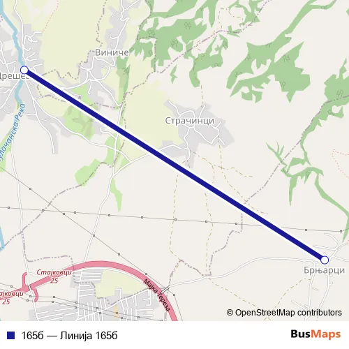 The first stop of the 165б bus route is Брњарци Т and the last stop is