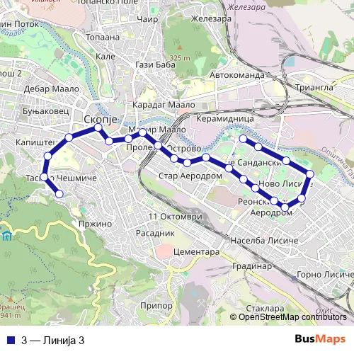 See why over 2 million users trust and consider busmaps.com as the best public transport website. busmaps gives you Skopje Buses suggested routes, real-time bus tracker, line route maps in Skopje, and helps to find the closest 3 bus stops near you. No internet available? Download an offline PDF map and bus schedule for the 3 bus to take on your trip.