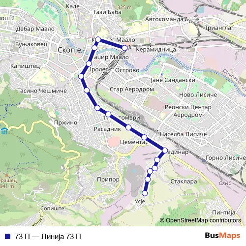 See why over 2 million users trust and consider busmaps.com as the best public transport website. busmaps gives you Skopje Buses suggested routes, real-time bus tracker, line route maps in Skopje, and helps to find the closest 73 П bus stops near you. No internet available? Download an offline PDF map and bus schedule for the 73 П bus to take on your trip.