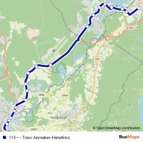Bus 113 - Toso-Jevnaker-Hønefoss: Full Schedule in Honefoss