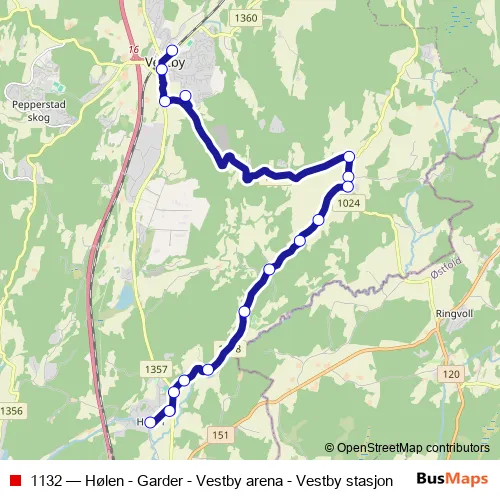 Ruter 1132 Hølen - Garder - Vestby arena - Vestby stasjon Bus