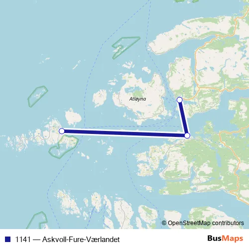 The first stop of the 1141 ferry route is Værlandet ferjekai and the last stop is Askvoll kai. 1141 (Askvoll-Fure-Værlandet) is operational during everyday.