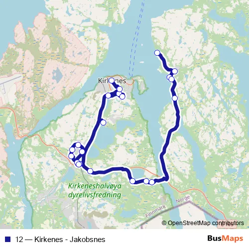 Bus 12 - Kirkenes - Jakobsnes: Full Schedule in Kirkenes