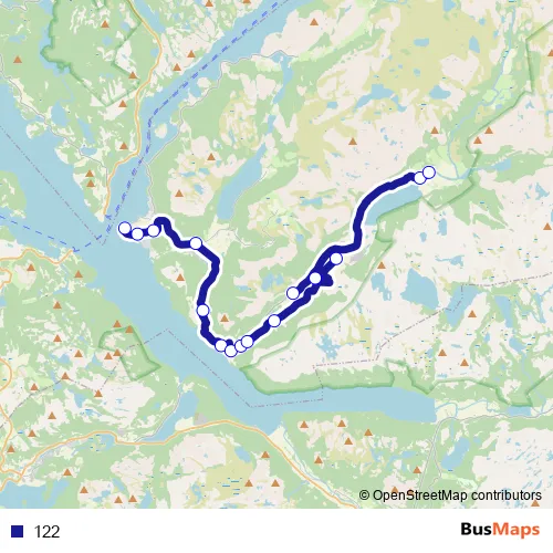 The first stop of the 122 bus route is Forsand kai and the last stop is Øvre Espedal. 122 is operational during on weekdays.