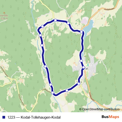 Click here to view the nearest 1223 - Kodal-Tollehaugen-Kodal bus stop.