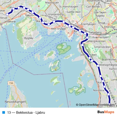 See why over 2 million users trust and consider busmaps.com as the best public transport website. busmaps gives you Oslo Trams suggested routes, real-time bus tracker, line route maps in Oslo, and helps to find the closest 13 tram stops near you. No internet available? Download an offline PDF map and bus schedule for the 13 tram to take on your trip.
