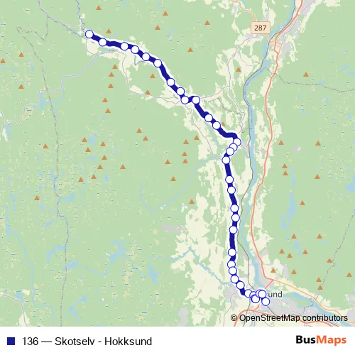 The first stop of the 136 bus route is Hammerfoss and the last stop is Hokksund stasjon. 136 (Skotselv - Hokksund) is operational during on weekdays.