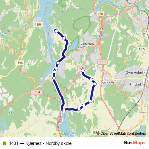 The first stop of the 1431 bus route is Nordby skole and the last stop is Kjellveien. 1431 (Kjærnes - Nordby skole) is operational during on weekdays.