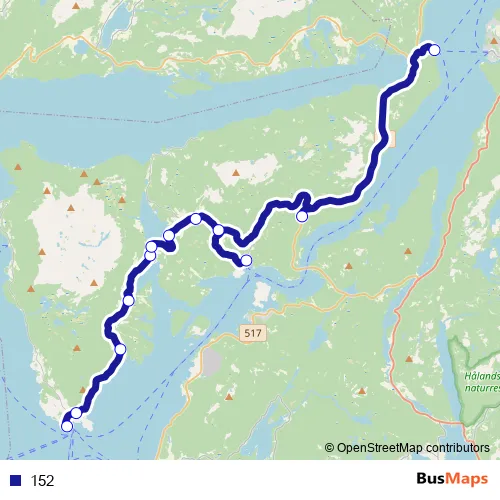 The first stop of the 152 bus route is Øvrabø bussterminal and the last stop is Hebnes kai. 152 is operational during everyday.