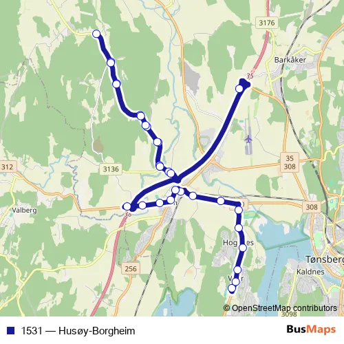 Bus 1531 - Husøy-Borgheim: Full Schedule in Tonsberg