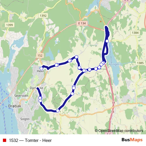 Bus 1532 - Tomter - Heer in Drobak: Stops & Timetable