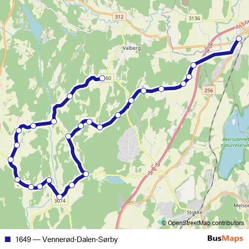 Bus 1649 - Vennerød-Dalen-Sørby in Tonsberg: Stops & Timetable