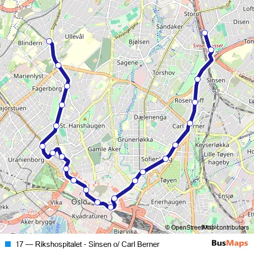 See why over 2 million users trust and consider busmaps.com as the best public transport website. busmaps gives you Oslo Trams suggested routes, real-time bus tracker, line route maps in Oslo, and helps to find the closest 17 tram stops near you. No internet available? Download an offline PDF map and bus schedule for the 17 tram to take on your trip.