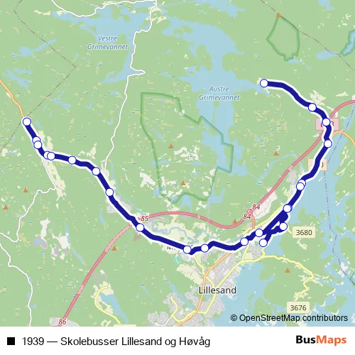 Bus 1939 - Skolebusser Lillesand og Høvåg Schedule in Lillesand