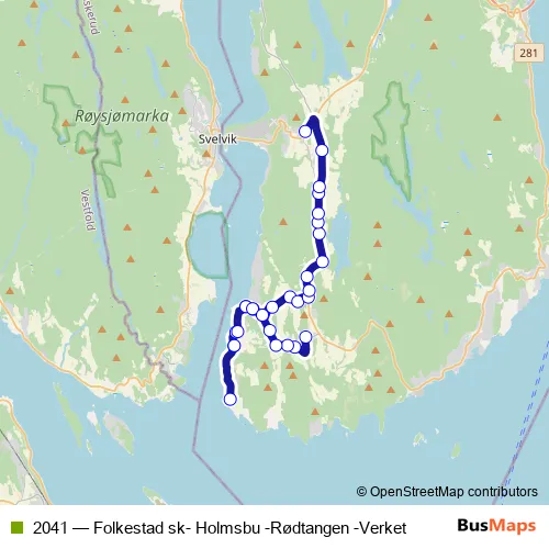 Click here to view the nearest 2041 - Folkestad sk- Holmsbu -Rødtangen -Verket bus stop.
