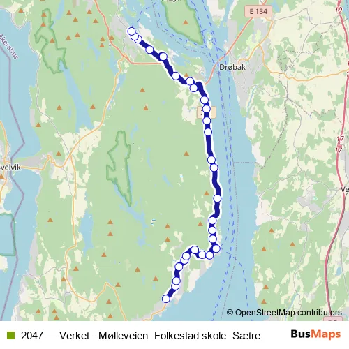 Bus 2047 - Verket - Mølleveien -Folkestad skole -Sætre: Full Schedule in Svelvik