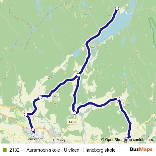 The first stop of the 2132 bus route is Aursmoen skole and the last stop is Haneborg skole. 2132 (Aursmoen skole - Ulviken - Haneborg skole) is operational during on weekdays.