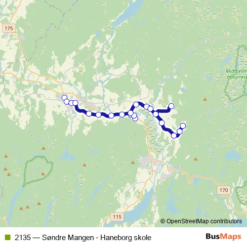 Mokroken. 2135 (Søndre Mangen - Haneborg skole) is operational during on weekdays.