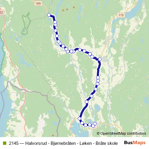 The first stop of the 2145 bus route is Bråte skole and the last stop is Stigen. 2145 (Halvorsrud - Bjørnebråten - Løken - Bråte skole) is operational during on weekdays.