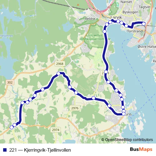 See why over 2 million users trust and consider busmaps.com as the best public transport website. busmaps gives you Larvik Buses suggested routes, real-time bus tracker, line route maps in Larvik, and helps to find the closest 221 bus stops near you. No internet available? Download an offline PDF map and bus schedule for the 221 bus to take on your trip.