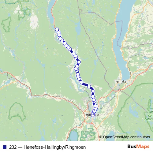 Bus 232 - Hønefoss-Halllingby/Ringmoen Schedule in Honefoss