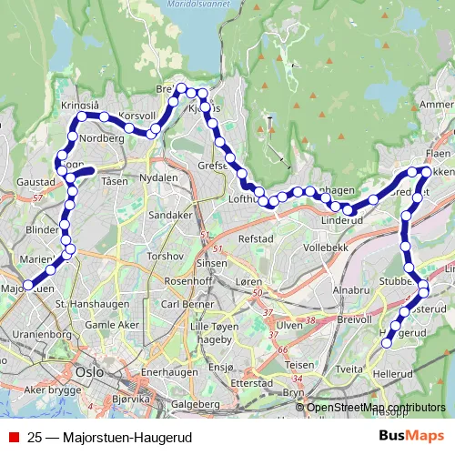 Bus 25 - Majorstuen-Haugerud: Full Schedule in Oslo