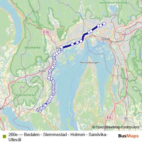 Bus 260e - Bødalen - Slemmestad - Holmen - Sandvika- Ullevål Schedule in Asker
