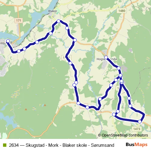 Click here to view the nearest 2634 - Skugstad - Mork - Blaker skole - Sørumsand bus stop.