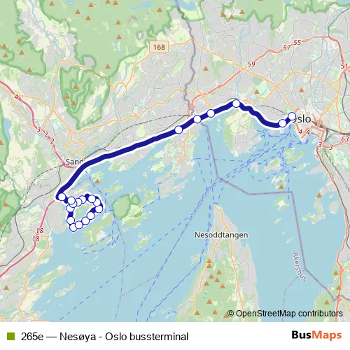 Click here to view the nearest 265e - Nesøya - Oslo bussterminal bus stop.