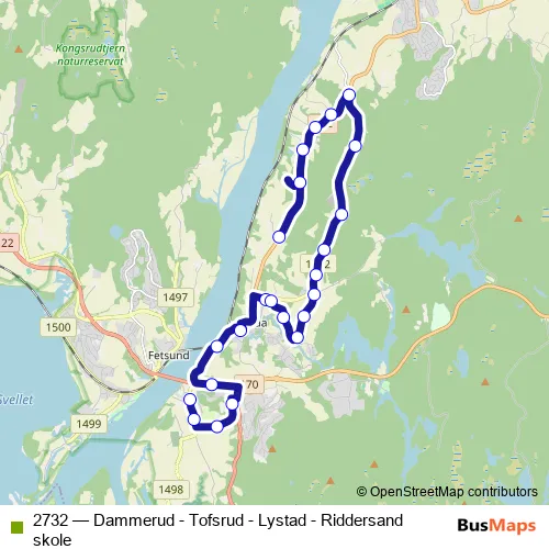 Bus 2732 - Dammerud - Tofsrud - Lystad - Riddersand skole in Fjerdingby: Stops & Timetable