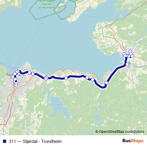 Click here to view the nearest 311 - Stjørdal - Trondheim bus stop.