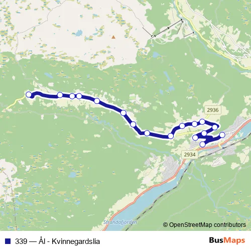 The first stop of the 339 bus route is Ål torget and the last stop is Myking. 339 (Ål - Kvinnegardslia) is operational during on weekdays.