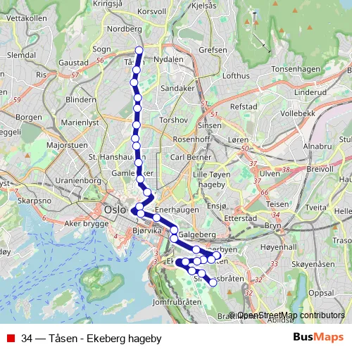 See why over 2 million users trust and consider busmaps.com as the best public transport website. busmaps gives you Oslo Buses suggested routes, real-time bus tracker, line route maps in Oslo, and helps to find the closest 34 bus stops near you. No internet available? Download an offline PDF map and bus schedule for the 34 bus to take on your trip.