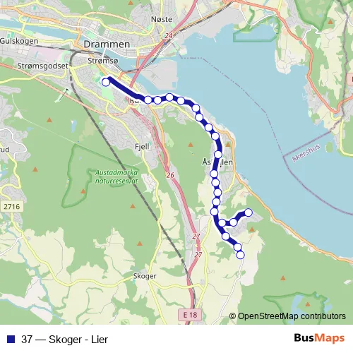 Bus 37 - Skoger - Lier Schedule in Drammen