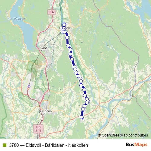 Click here to view the nearest 3780 - Eidsvoll - Bårlidalen - Neskollen bus stop.