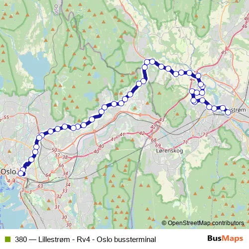 Bus 380 - Lillestrøm - Rv4 - Oslo bussterminal Schedule in Oslo