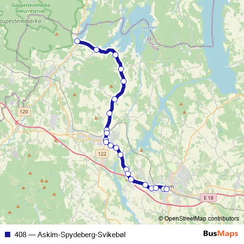 Bus 408 - Askim-Spydeberg-Svikebøl in Spydeberg: Stops & Timetable