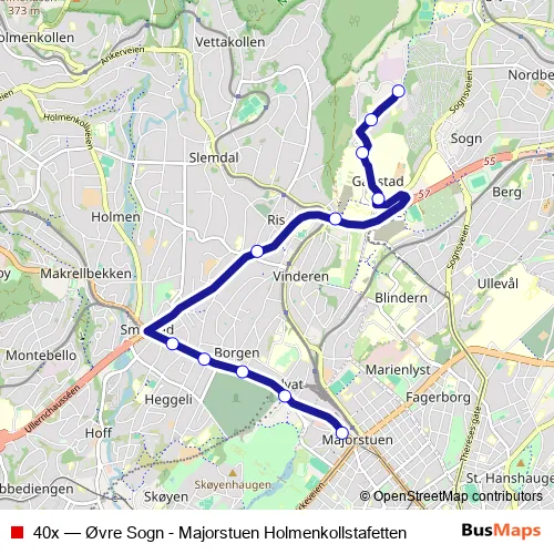 Click here to view the nearest 40x - Øvre Sogn - Majorstuen Holmenkollstafetten bus stop.