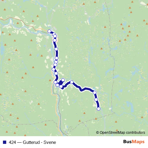 The first stop of the 424 bus route is Flesberg skole and the last stop is Gutterud. 424 (Gutterud - Svene) is operational during on weekdays.