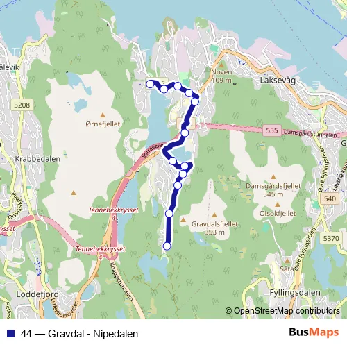 Bus 44 - Gravdal - Nipedalen: Full Schedule in Bergen