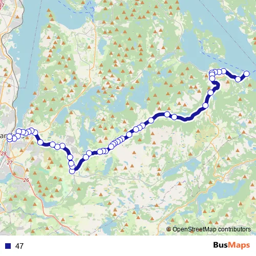 Additional information: 47 has 44 stops and the total trip duration for this route is approximately 38 minutes.