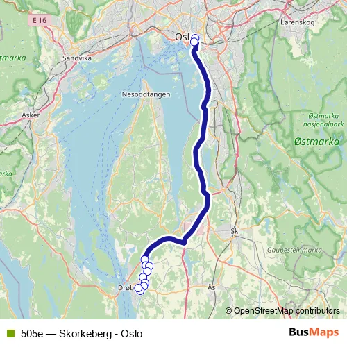 Bus 505e - Skorkeberg - Oslo in Drobak: Stops & Timetable