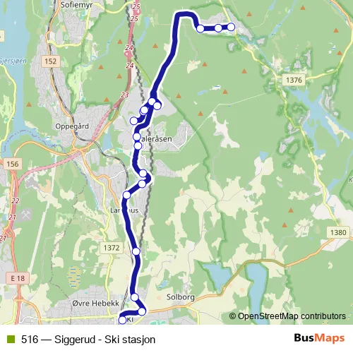 Bus 516 - Siggerud - Ski stasjon: Full Schedule in Ski
