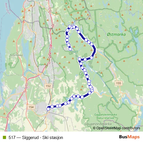 The first stop of the 517 bus route is Ski stasjon Jernbaneveien and the last stop is Siggerud. 517 (Siggerud - Ski stasjon) is operational during everyday.