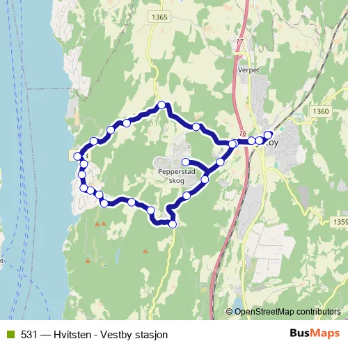 Bus 531 - Hvitsten - Vestby stasjon in Vestby: Stops & Timetable