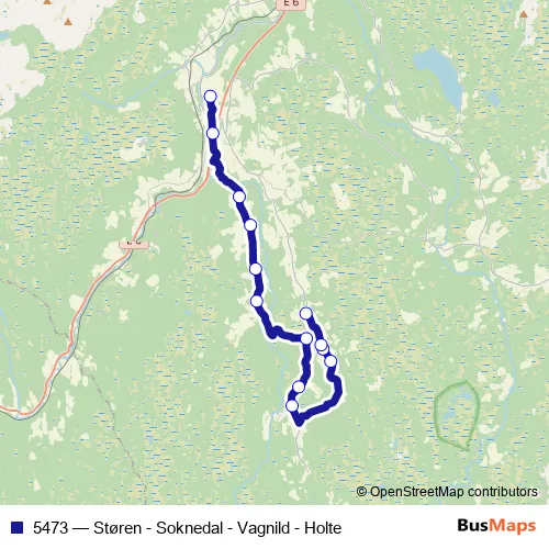 The first stop of the 5473 bus route is Soknedal and the last stop is Holte. 5473 (Støren - Soknedal - Vagnild - Holte) is operational during on weekdays.